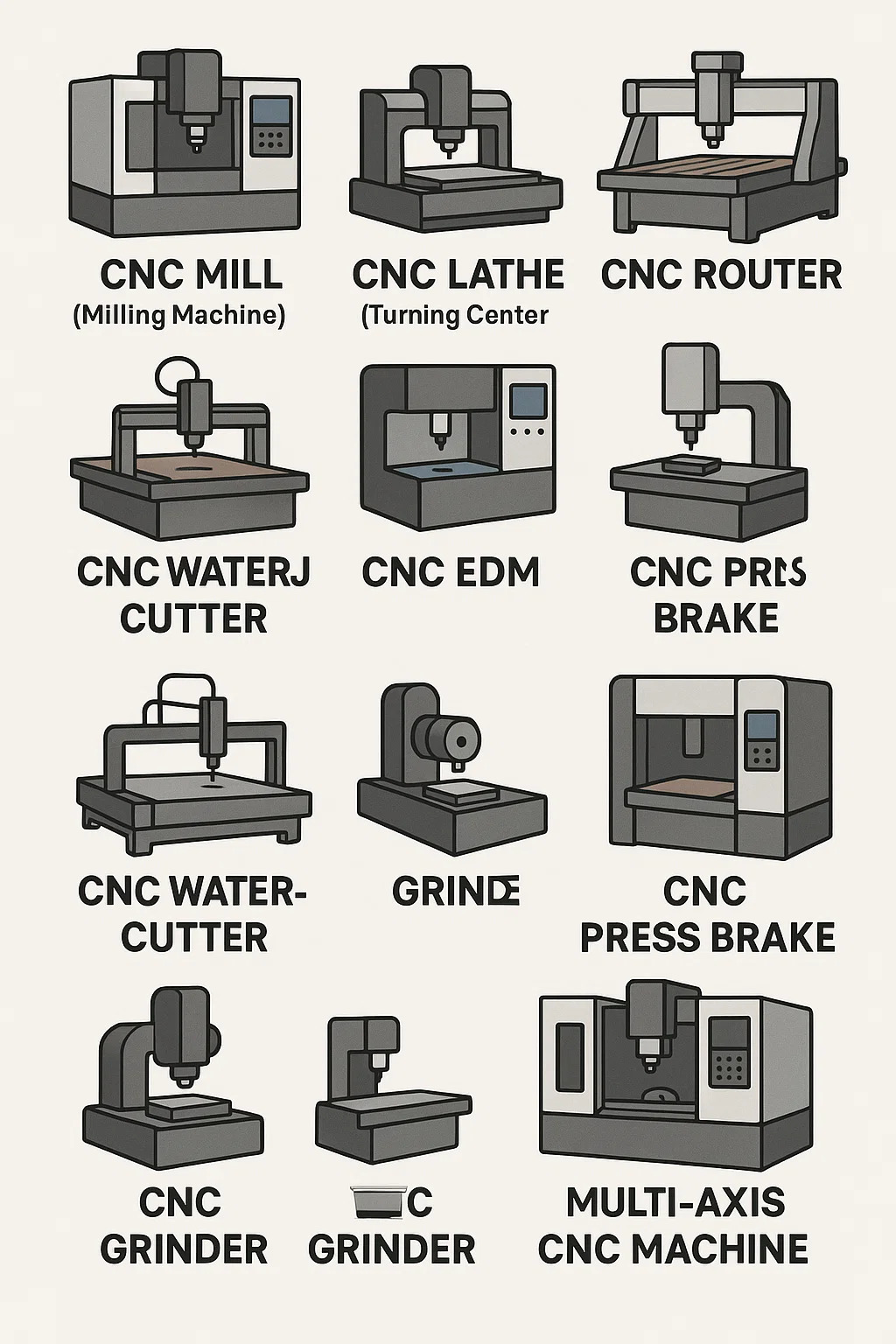 Here's a breakdown of common CNC machine types you'll find in workshops and factories, explained in plain terms: ●CNC Mills (Milling Machines / Machining Centers): •What it does: Uses spinning cutting tools to carve away materia...