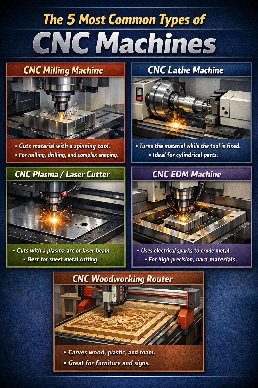 Here's an introduction to the five most common types of CNC machines: